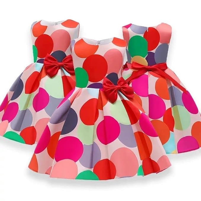 Baby Girl Frock Polka Printed Ishq Frock for Kids Girl 1 to 7 Years Old (ISHQ, 1-2 Years) Multicolour
