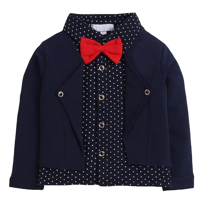 Boy's Cotton Polka Dot Print Shirt and Pants Set with Bow