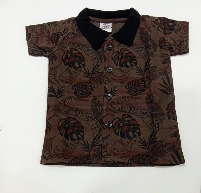 brown printed t shirt with black shorts is a very elegant but casual look. It has a black collar and botton down with half sleeves. (brown &black, excel) Comfortable Baby Clothes: The soft fabric used in this baby clothing set it’s perfect for any season. For 5-9 year's baby boy