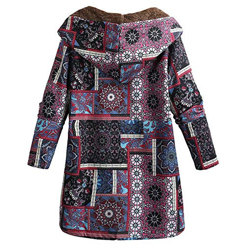 Fabric Women's Vintage Loose Hooded Coat Floral Printed Fleeces Lining Buttoned Plus Size Winter Warm Parka Casual Long Coat Outwear