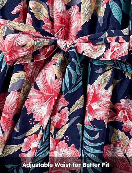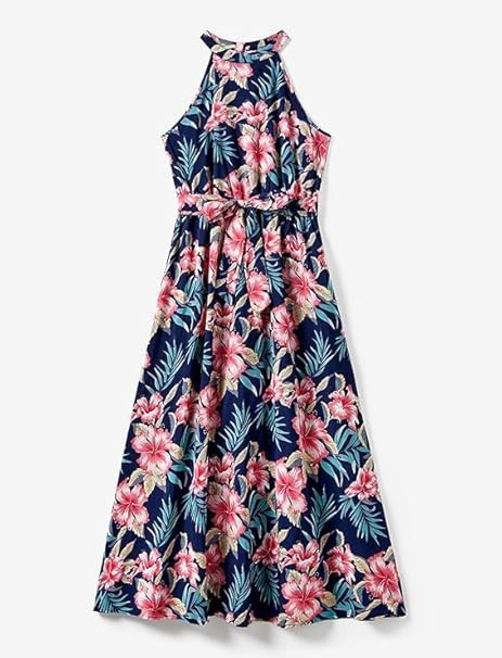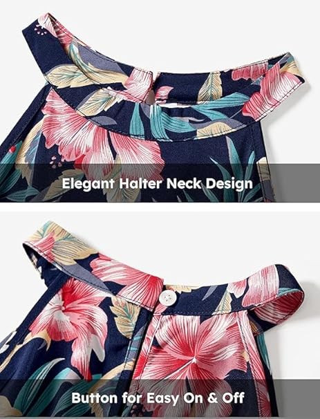 gril sFamily Matching Hawaiian Dresses for Mom and Girls Tropical Neck Sundress Boho Beach Hawaiian Outfit for Toddler Girl