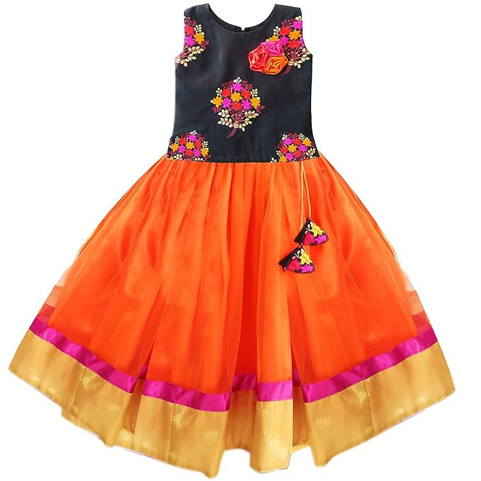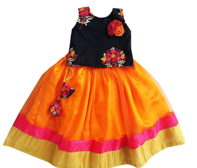 Department Name: Baby Girls | Pattern Type: Striped | Colour: orange and black combo | sleeve type: sleeveless | item length: full length| neck: round neck | backside open: zipper Occasion : Best Suitable For All Occasion Like Mahamaham Festival, Ugadi, Mysuru Dasara, Hampi Utsav, Pongal, Karaga, Onam, Wedding, Ceremonial, Party, Birthday, Festival Etc,Best Gift Suitable For Birthday Girl Premium Export Quality Costume And Party Wear Dress For Your Little Angel For Any Special Occasion Celebration.A Must Buy Costume For Your Baby Girl To Give Her a Traditional, Ethnic, Rich and Cool look for your Princess. Lehenga Choli For Girls | Pattu Pavadai For Kids | Ethnic Wear For Girls | Traditional Dress For Girls And Baby Girl | Pattu Pavadai For Girls Latest Design | Kids Lehenga Choli | Blouse Maggam Work Designs Pattu | Pattu Langa For Kids | Ethnic Wear For Baby Girl | South Indian Lehenga Choli For Girls and baby Girls | Embroidered Work Blouse |