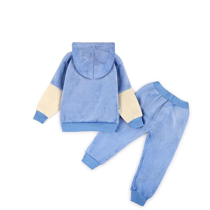 This fleece sweatshirt and jogger pant set is perfect for keeping your little one warm and toasty during the winter months. The full sleeve hooded sweatshirt features an charming cartoons and vibrant colors, adding a touch of whimsy to the outfit. The hoodie and pants are designed with a snug yet stretchy fit, allowing for easy movement and playtime. Made from high-quality velvet fleece material, this set is incredibly soft against your child's delicate skin. Versatile Wear: Ideal for playdates, outdoor adventures, or lounging at home, this outfit is a must-have for your little one's winter wardrobe. Easy Care: Gentle Machine Wash, use mild detergents. For 5-9 year's baby boy