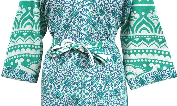 Cotton Maxi Dress for Women Stylish Features: This night dress for women is Long style up to ankle, removable sash tie, belt loops, inside ties, open front, luxurious flowing drape for Women night dress for girls. ladies night dress Material Type:This night dress for women stylish is 100% Cotton. Free Size fits most also can be used as bath robe towels cotton for women full length . Length - 50 Inches; Sleeve Length - 15 Inches. This maxi dress for women cotton nighty stunning dressing gown will make a colorful addition to a loungewear/bedroom collection. Designed in a classic kimono style, it features a bright all-over print and a self-tie waist. Lovely Cotton Kimono Robe perfect for a wedding night, bedroom wear and holidays traveling, pajamas, party, home, hotel. best gifts for girlfriend, wife, sister, daughter. Care Instructions: Machine Wash