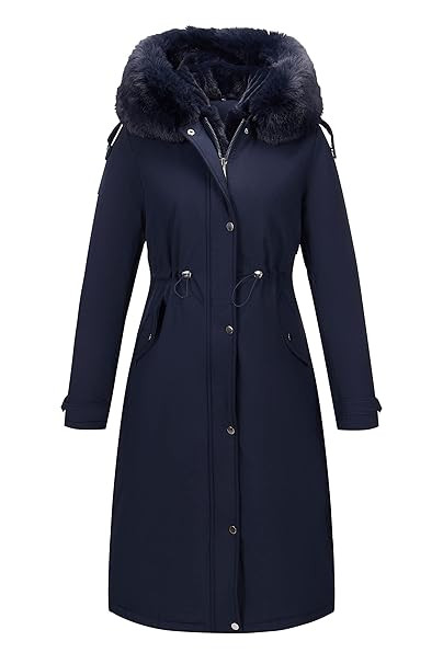 Jacket Women Winter Fur Lined Coat with Long Fur Collar Hooded Cold-resistant, Warm Leather Bubble Overcoat