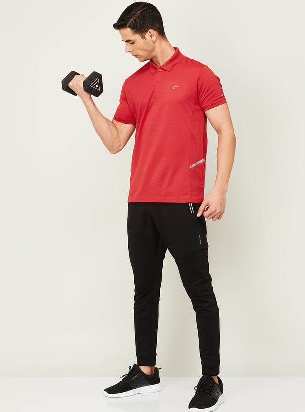 Get ahead of the trends with this solid polo T-shirt that is comfortable and stylish. It is designed with a polo neck, button closure, and half sleeves. Make your outfit stand out by teaming it with a pair of joggers and lace-up shoes