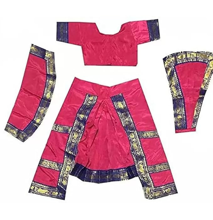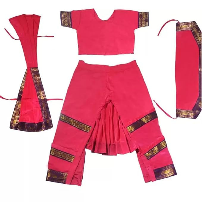 Pink Bharatnatyam Dress for Girls with 1 Line Ghungroo Classical Dance Costume