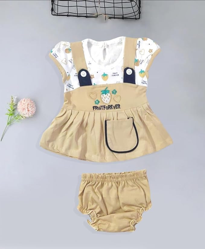 Premium Pure Cotton Material: Crafted from high-quality pure cotton fabric, this baby girl frock and panty set offers exceptional softness, breathability, and comfort for your little one's delicate skin. The natural fabric ensures optimal comfort, making it ideal for all-day wear. Embroidered Design: Featuring delicate embroidery details, this frock exudes elegance and charm. The intricate embroidery adds a touch of sophistication to the round neck frock, making it perfect for special occasions such as parties and festivals. Round Neck and Short Sleeve Design: The round neck and short sleeve design of the frock provides a classic and timeless look. It offers a comfortable fit and allows for easy movement, ensuring that your baby girl can play and move freely without restriction. Fit and Flare Frock Dress: The fit and flare silhouette of the frock dress adds a playful and feminine touch. It creates a flattering shape that complements your baby girl's adorable features, making her the center of attention at any event. Matching Panty Included: This set comes complete with a matching panty, providing a coordinated look from head to toe. The panty features an elasticated waistband for a comfortable fit, ensuring that your baby girl stays snug and secure throughout the day. For 4-5 year's baby