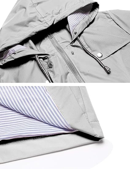 MATERIAL: 100% Polyester Waterproof Material With Striped Cotton Lined, Breathable, Soft Touch, Windproof, Easy To Package. DESIGN: This Women Rain Jacket With Attached Hood, Drawstring Waist Design. Solid Pattern, Sun Protection And Waterproof Function, Breathable, Skin-touch, Quick-drying, Lightweight Casual Fit, Front Pocket Decoration, Suitable For All Seasons. OCCASION: Suitable For Hiking, Climbing, Traveling, Camping, Sports, Outdoor, Easy To Quick-drying When It Is Light Rain Or Snow And Wind. SIZE:Please Check Our SIZE CHART Picture In the Left Or Detailed Size Info Below In Product Description Carefully.If You Have Any Question About Size, Just Contact To Us, We Will Try Our Best To Help You Get A Wonderful Shopping Experience. GARMENT CARE: We Recommend You Washing By Hand Or Machine Wash On Gentle Cycle, Dry Clean, Do Not Iron, To Protect Waterproof Material Performance.