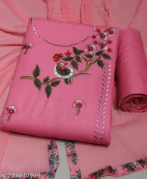 PURE COTTON SUIT WITH FANCY EMBROIDERY WORK ALONG WITH FANCY DIGITAL PRINT LACE ON TOP AND NAJNEEN DUPATTA WITH FOUR SIDE DIGITAL PRINT LACE (TOP+BOTTOM+DUPATTA)