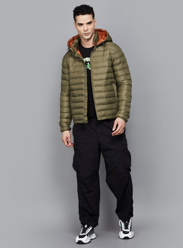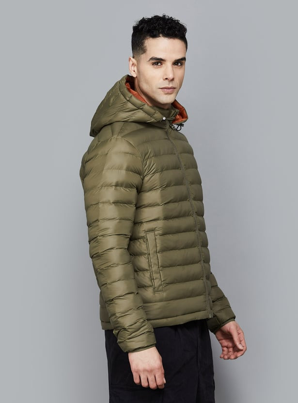 Shield yourself against the cold in this dynamite lightweight puffer jacket featuring full sleeves, a hooded neck, and a straight hem. Perfect for layering, this jacket adds a flair to your winter outfits.
