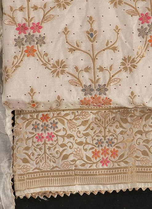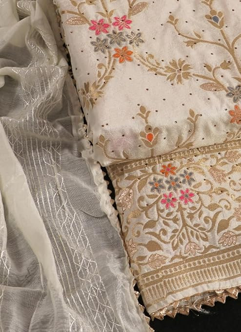 Swirvoski Work Unstitched Salwar Suit Dress Material With Chanderi Embroidery Work Dupatta