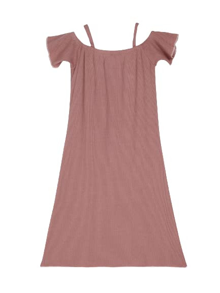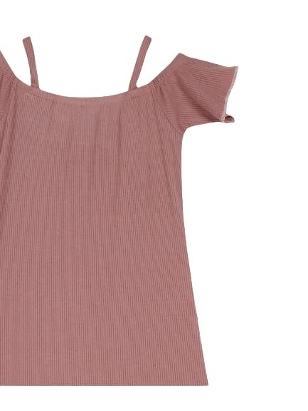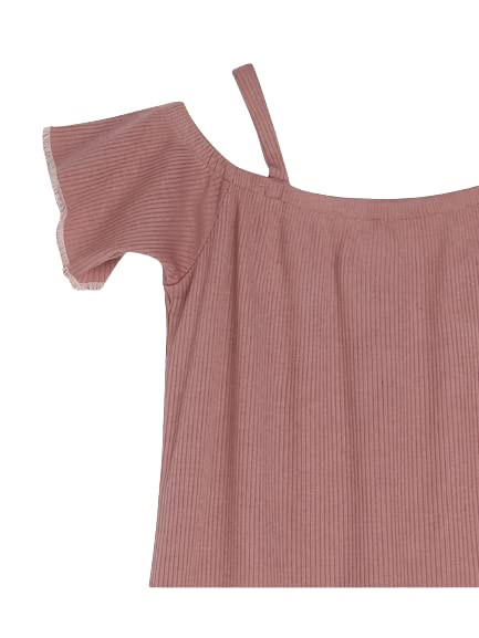 Teenager Dress in Pink Colour Cotton Ribbed Fabric with Cold Shoulder