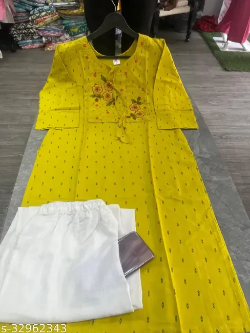 Top Fabric : Organza / Bottom Fabric : Pure Cotton Top Shape : Straight / Color : Grey / Print Pattern : Ethnic Motifs Ornamention : Mirror Work on Neckline / Neck : V-Neck / Sleeves : Three-Quarter Sleeves