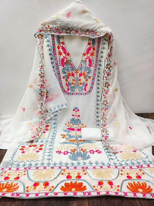 Women Georgette Embroidery work salwar suit with muilty work jorget dupatta free size unstitch dress material Set