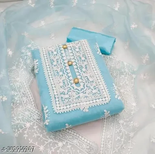 Name : Unstiched Exclusive Super Best Collections Organza Party Wear Fancy Patiala Pakistani jaipuri All Occastions Organza Suits Women's Aqua Blue Embellished Embroidered Organza Suits & Dress Materials