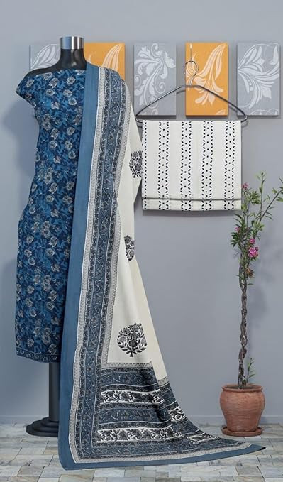 Super Cotton Fabric Dress material Unstitched Suit Hand Block Jaipuri Print 3Piece Set for women and Girls Salvar Suit Dress material Running Fabric use for party wear and office wear,festive or wedding wear