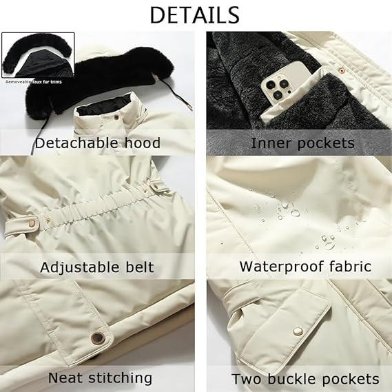 Warm & Cozy: Stay warm and cozy in our waterproof winter parka, designed with a durable shell and a thicken fleece lining. The threaded cuffs and removable faux fur hood provide extra protection against cold air, making it the perfect choice for a thick winter coat. Durability & Fashion: Our women's long winter puffer coat is not only stylish but also built to last. It features a sturdy shell, high-quality insulation, heavy-duty zipper, and friction-resistant stitching, ensuring both durability and fashion in one parka jacket. Adjustable Fit: Our warm down jacket features an adjustable belt that not only keeps you warm but also allows you to highlight your elegance by adjusting the size. Enjoy the warmth and style at the same time with our versatile jacket. Convenient Pockets: Stay organized and keep your hands warm with our winter jacket's two flap pockets and one interior pocket. Carry your keys, phone, wallet, or any other essentials with ease while looking fashionable. Occasions: Our thickened women's outerwear is perfect for casual and winter outdoor activities such as hiking, traveling, camping, and daily activities. It is suitable for various occasions and provides the warmth and comfort you need.