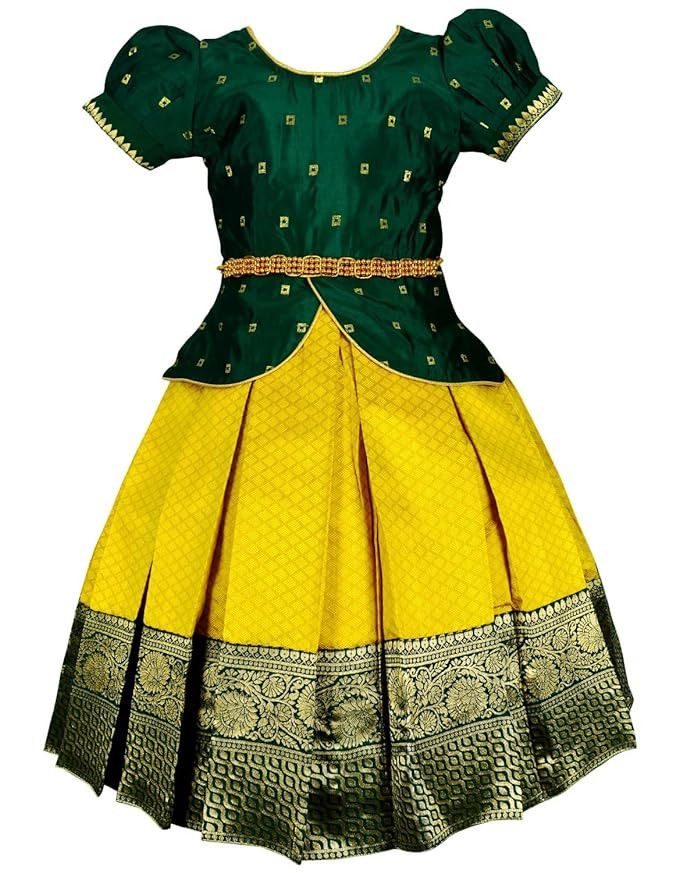 New south Indian traditional pattu pavadai pattu langa lehenga choli Jecquard Lehenga choli for girls dress (Green)