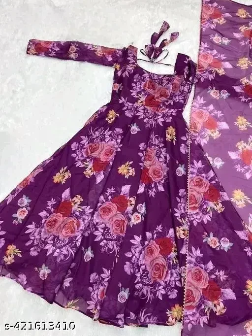 Women's Cotton Blend Floral Printed Anarkali 2 Kurta with Trouser & Dupatta