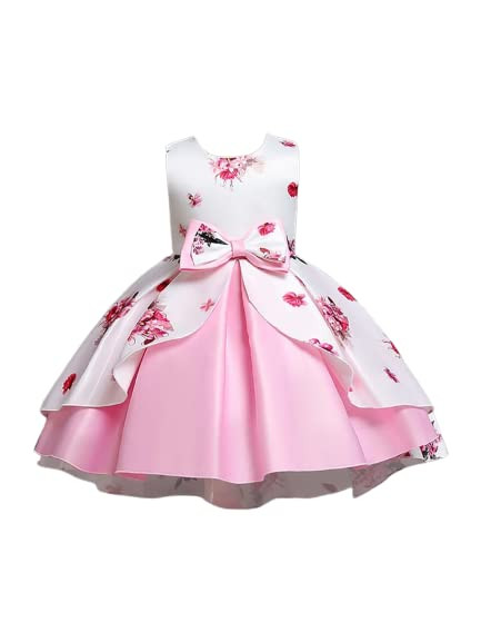 Buy & Try Girl's Satin Floral Printed Frock Knee Length Short Frocks Dress.