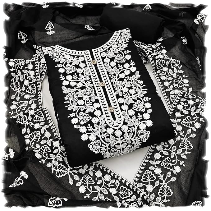 Women's Heavy Chanderi Embroidery Work Unstitched Salwar Suit Dress Material With Chanderi Work Dupatta
