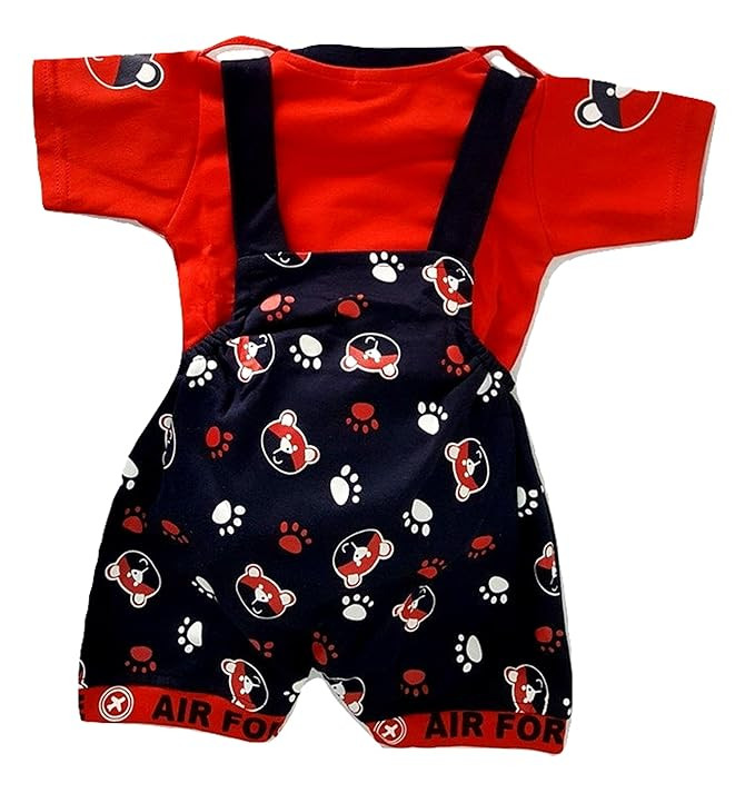 Material: Premium hosiery cotton Set of: Dungaree & T-shirt Pattern: Printed Neck: Round neck Wash care: Gentle wash For 4-5 year's baby