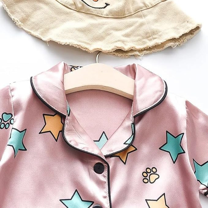 Material Composition : Satin, Ideal For - Kids/Baby Boys and Baby Girls, Package Contain : 2 Shirt and 2 Pyjama for Unisex Kids Kid’s silk sleepwear shirt and pyjamas set nightsuit for little boys and girls, is made from polyester, and provide very smooth texture, shiny appearance, silky and cool feel, so comfy to wear. These silks make sleepwear set offers children very comfortable sleeping experience, allow the body to relax naturally, sleep peacefully, improve quality of sleep, and also enhance the taste of lifestyle, elegance and luxury. Kid’s silk sleepwear shirt and pyjamas set nightsuit for little boys and girls, and provide very smooth texture, shiny appearance, silky and cool feel, & easy dressing. Very comfortable, soft and luxurious shirt and pajama sleepwear set for kids. For 5-9 year's baby boy