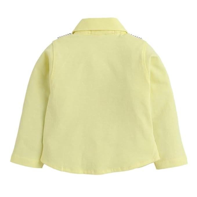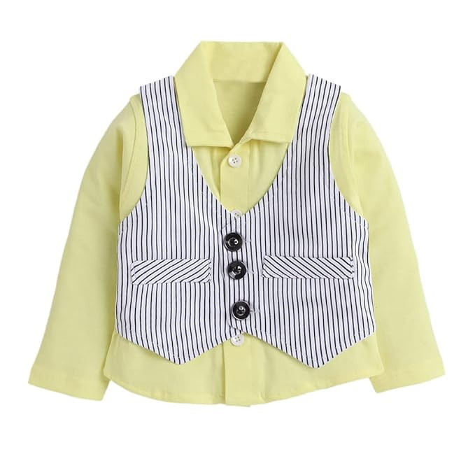 Boys Cotton Stripe Print Shirt Pant Set with Waistcoat in Yellow