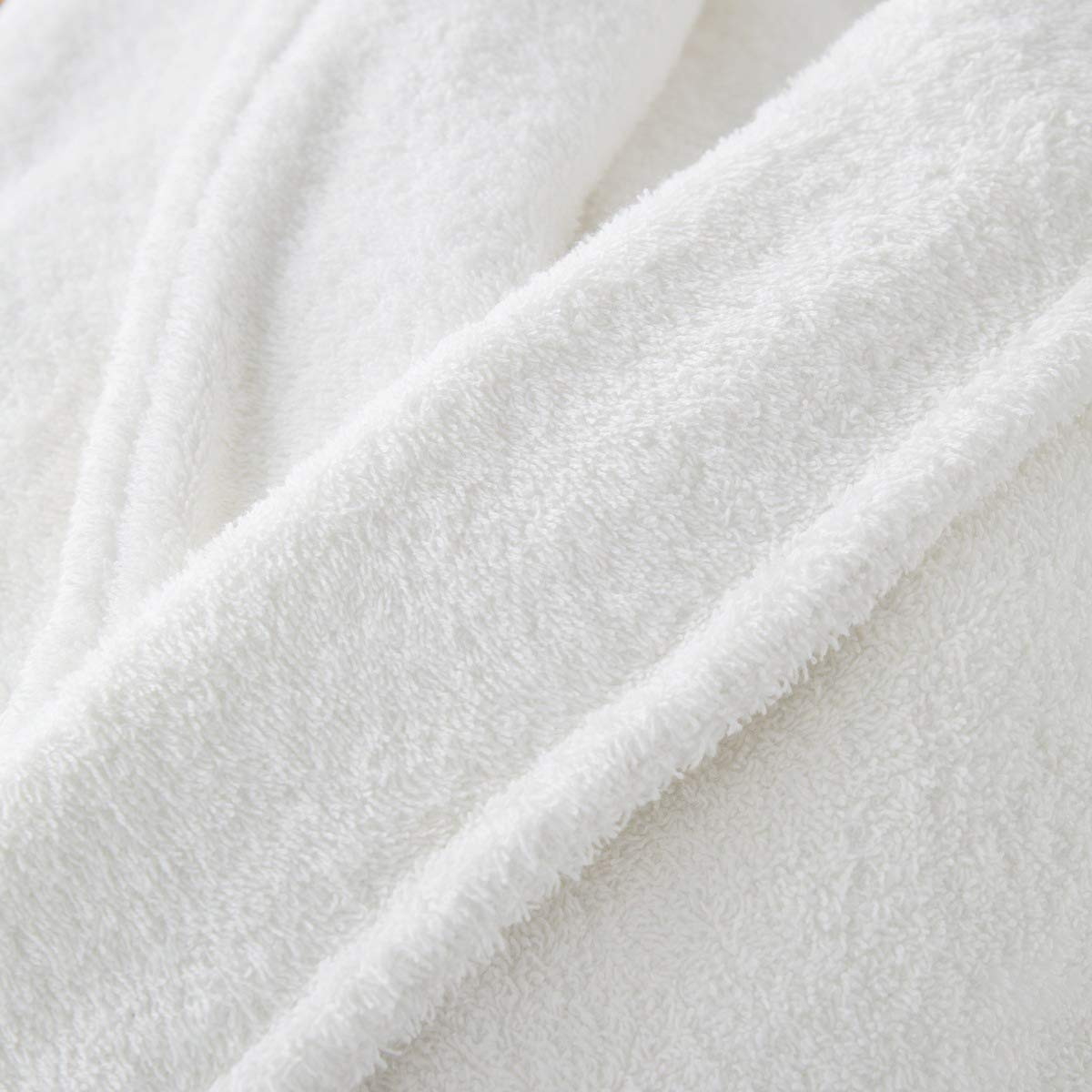 MATERIAL:100% Cotton; COLOR: White QUALITY: Premium Shawl Collar with Double Sided Terry for Higher Absorbency. BATHROBE DIMENSION: Length - 108 CM, Chest - 55 CM, Sleeve - 53 CM GSM : 380, Long-lasting fade resistant fabric CARE INSTRUCTIONS: Wash Before First Use. Do Not Bleach. Tumble Dry. Wash dark Color Separately. Machine Wash Warm With Like Colors.