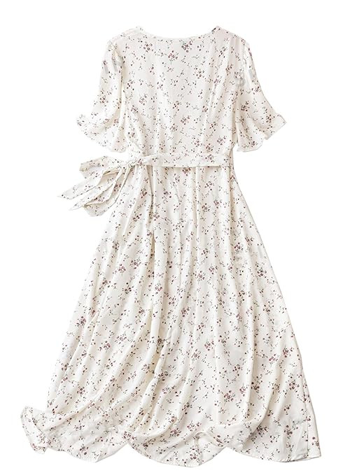 Material: Polyester Fabric. Comfy and soft, proper weight, high quality fabric, very flowy and airy. Wash guide: Regular machine wash Wrap Dress: Effortlessly chic, a wrap dress is versatile enough to wear from the beach to lunch or cocktails. Occasions: Party, dating, cocktail, wedding, shopping, hang-out, night-out, vacation, holiday, fall, winter, spring and summer. Package Content: 1* western dress || Type:- Western Dress For Women || Sleeve:- Flounce Sleeve Pattern : Floral Print || Neck Style : V-Neck