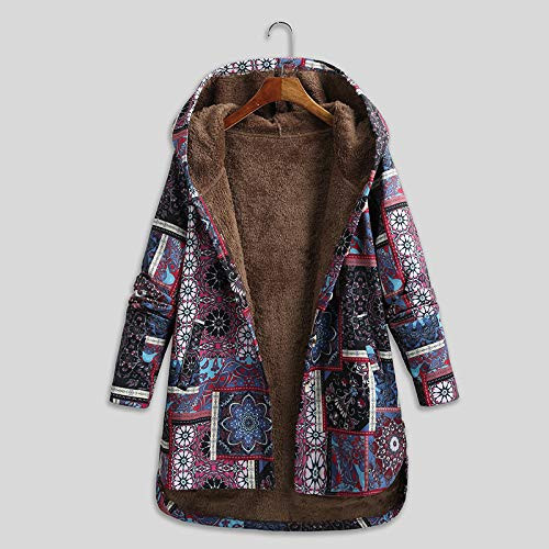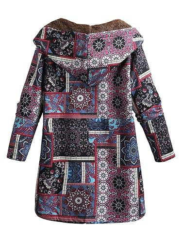 Fabric Women's Vintage Loose Hooded Coat Floral Printed Fleeces Lining Buttoned Plus Size Winter Warm Parka Casual Long Coat Outwear
