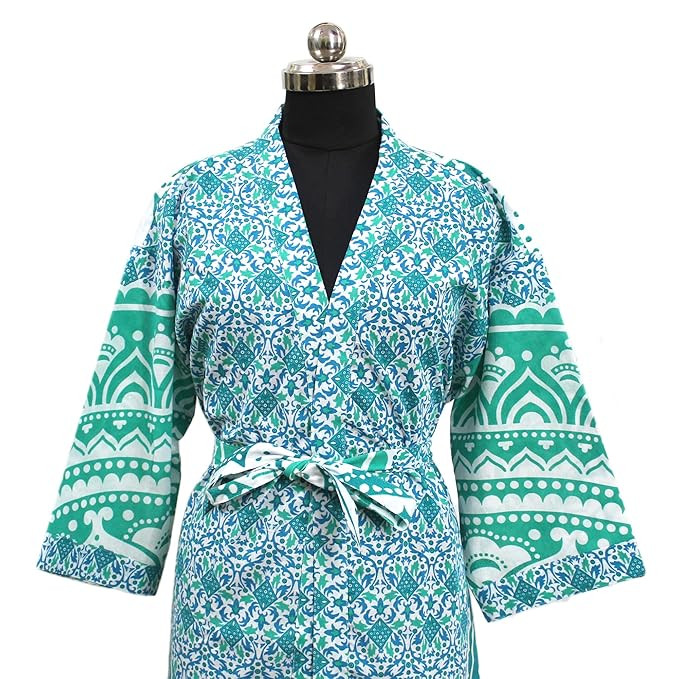 Cotton Maxi Dress for Women Stylish Features: This night dress for women is Long style up to ankle, removable sash tie, belt loops, inside ties, open front, luxurious flowing drape for Women night dress for girls. ladies night dress Material Type:This night dress for women stylish is 100% Cotton. Free Size fits most also can be used as bath robe towels cotton for women full length . Length - 50 Inches; Sleeve Length - 15 Inches. This maxi dress for women cotton nighty stunning dressing gown will make a colorful addition to a loungewear/bedroom collection. Designed in a classic kimono style, it features a bright all-over print and a self-tie waist. Lovely Cotton Kimono Robe perfect for a wedding night, bedroom wear and holidays traveling, pajamas, party, home, hotel. best gifts for girlfriend, wife, sister, daughter. Care Instructions: Machine Wash
