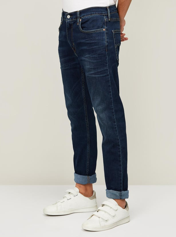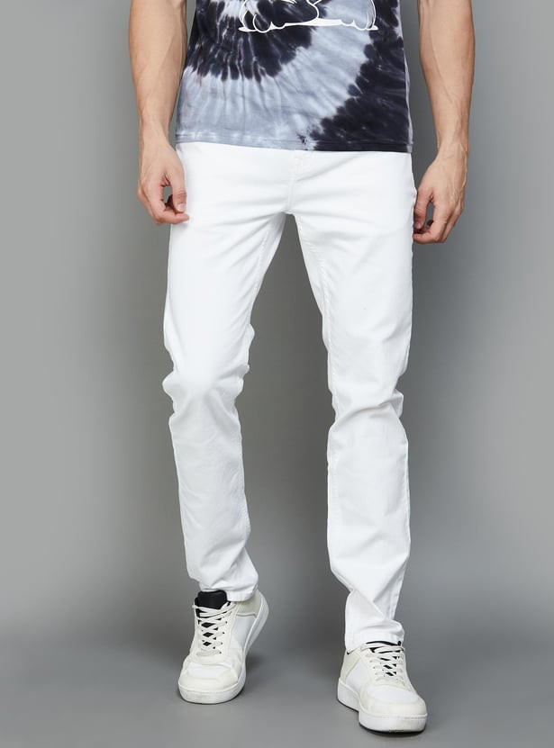 Defined by a washed design, this pair of jeans come with five pockets, belt loops and a slim fit for a stylish look.