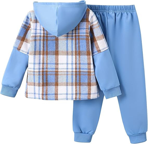 Material: Flannel plaid fabric. Kid boy clothes are soft, breathable, comfy, and skin-friendly. They are warm and ideal for fall, Winter, and spring sweatsuit sets.