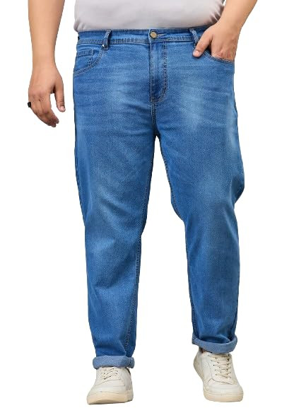 Men's Slim Fit Stylish Stretchable Cross Pocket 38 Size Light Blue Casusal Denim Jeans Pant for Men
