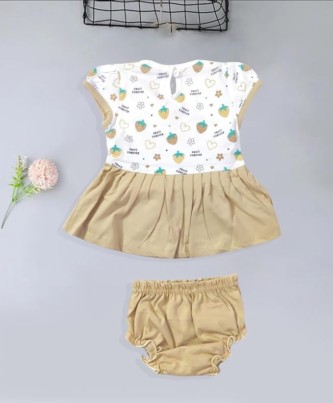 Premium Pure Cotton Material: Crafted from high-quality pure cotton fabric, this baby girl frock and panty set offers exceptional softness, breathability, and comfort for your little one's delicate skin. The natural fabric ensures optimal comfort, making it ideal for all-day wear. Embroidered Design: Featuring delicate embroidery details, this frock exudes elegance and charm. The intricate embroidery adds a touch of sophistication to the round neck frock, making it perfect for special occasions such as parties and festivals. Round Neck and Short Sleeve Design: The round neck and short sleeve design of the frock provides a classic and timeless look. It offers a comfortable fit and allows for easy movement, ensuring that your baby girl can play and move freely without restriction. Fit and Flare Frock Dress: The fit and flare silhouette of the frock dress adds a playful and feminine touch. It creates a flattering shape that complements your baby girl's adorable features, making her the center of attention at any event. Matching Panty Included: This set comes complete with a matching panty, providing a coordinated look from head to toe. The panty features an elasticated waistband for a comfortable fit, ensuring that your baby girl stays snug and secure throughout the day. For 4-5 year's baby