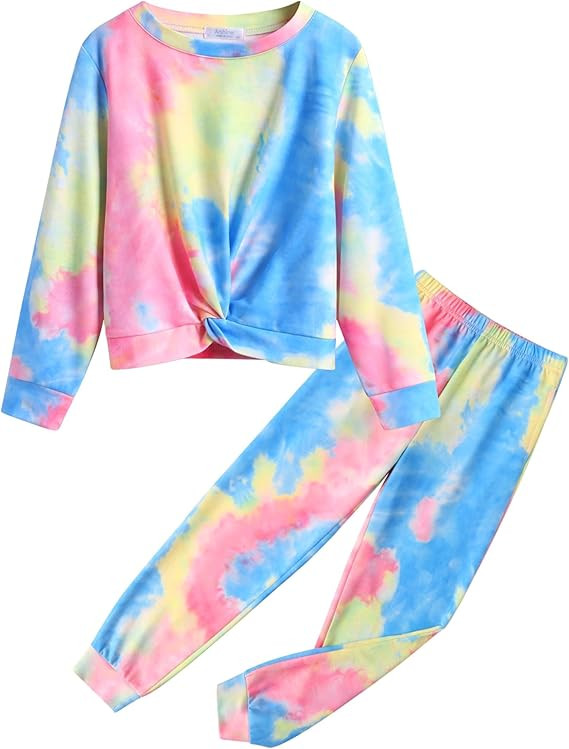 Unique Design:Girls tie dye tracksuit sets/Plaid outfits for Girls/High waist jogger sets/Cozy lounge wear/Long pants jogging suits/Striped sweatsuit for Girls/Active wear outfits for girls/Casual crew neck matching sets/Long Sleeve pullover tops/Tie dye tracksuit sets for sports/Tie dye outfits for girls/Girls sweat suits