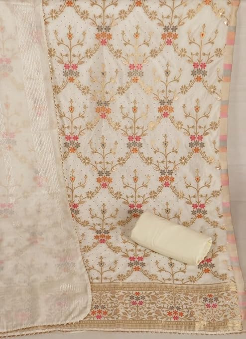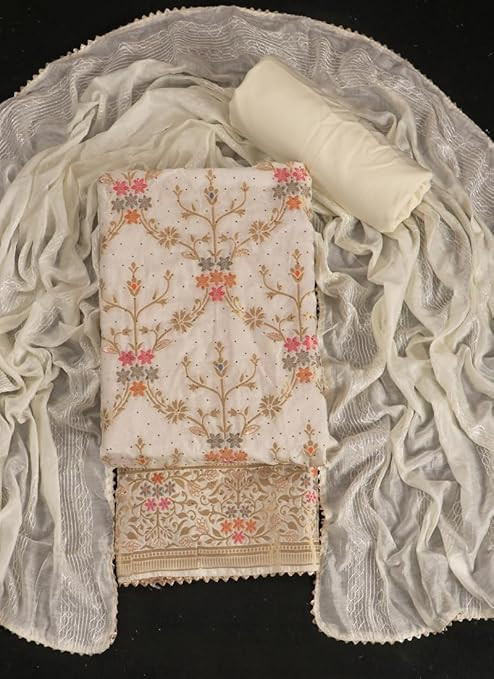 Swirvoski Work Unstitched Salwar Suit Dress Material With Chanderi Embroidery Work Dupatta