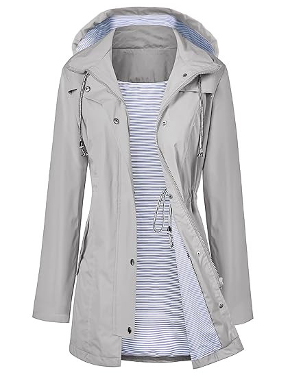 Raincoat Women Waterproof Long Hooded Trench Coats Lined Windbreaker Travel Jacket