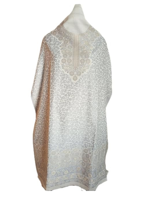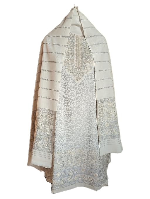 Women s Woolen Kashmiri Suit For Women With Salwar And Shawl Winter Wear Kani Unstitched Fabric Woollen Kurta Pant Set Dress Material by pure Pashmina wooltex(WHITE)