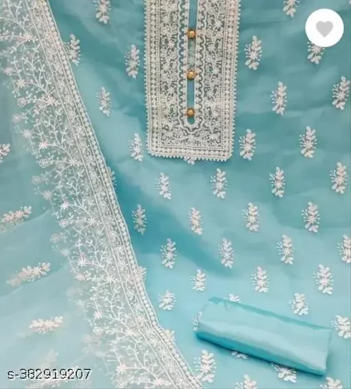 Name : Unstiched Exclusive Super Best Collections Organza Party Wear Fancy Patiala Pakistani jaipuri All Occastions Organza Suits Women's Aqua Blue Embellished Embroidered Organza Suits & Dress Materials