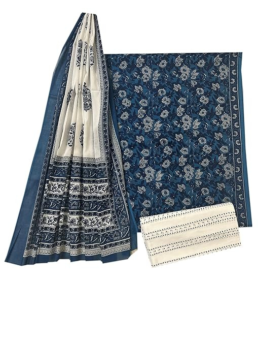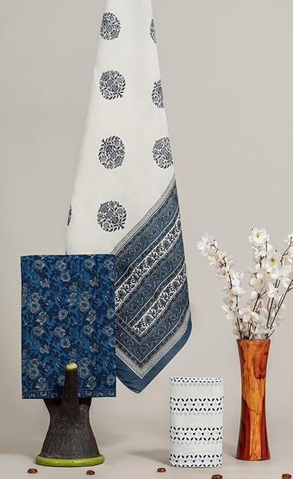 Super Cotton Fabric Dress material Unstitched Suit Hand Block Jaipuri Print 3Piece Set for women and Girls Salvar Suit Dress material Running Fabric use for party wear and office wear,festive or wedding wear
