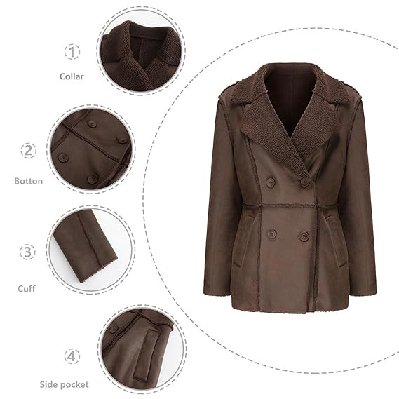 Material: Crafted from high-quality imitation leather with a faux suede finish and plush velvet lining for added warmth. Design: Features a stylish lapel collar with fur detailing for a chic and sophisticated look. Fit: Medium-length coat with regular long sleeves, offering a comfortable and flattering fit. Style: Temperament commuter style, perfect for both formal and casual settings during autumn and winter. Convenience: Equipped with no-iron treatment for hassle-free maintenance and everyday practicality.