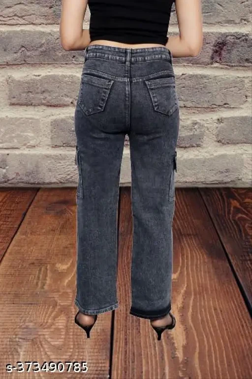 High Waist Box Pocket Cargo jeans for women. Crafted with premium cotton fabric, they fuse fashion and function seamlessly. The high waist design flatters your figure while providing a comfortable fit. Stylish box pockets add a utilitarian touch, enhancing yourNet Quantity (N) :