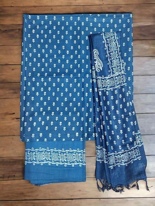 Each set comes with unstitched fabric for the shirt, trousers, and dupatta, allowing you to customize the outfit to suit your style. Use a gentle detergent and cold water to maintain the fabric's color and texture. Upgrade your wardrobe with our unstitched cotton suits and experience the perfect blend of style and comfort. Elevate your everyday look with our elegant suits and make a lasting impression wherever you go. Premium quality unstitched cotton silk fabric Available in a range of vibrant colors and designs