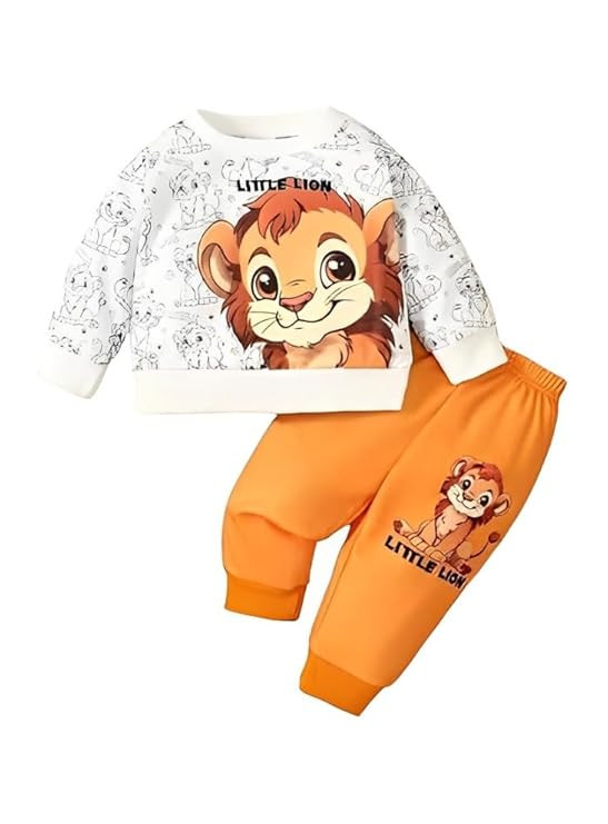 Kid's Dress for Boys | Full Sleeve Round Neck Animal Printed Sweatshirt and Pant Clothing Set for Baby Boys-Yellow