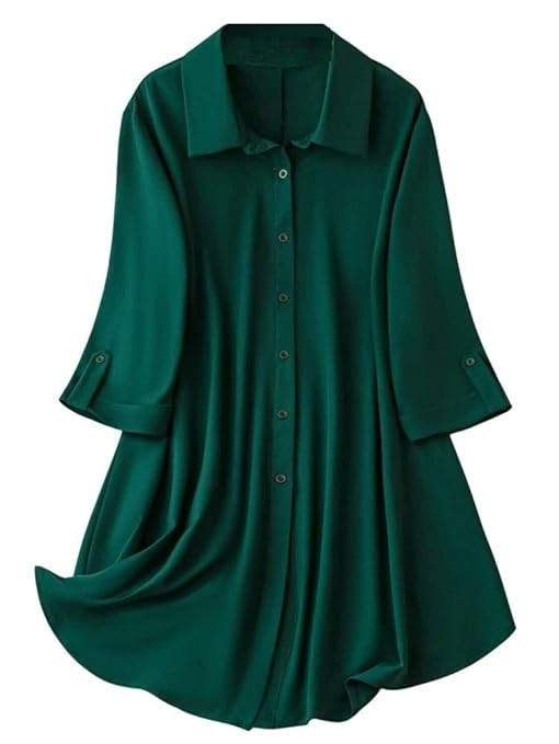 Rayon Solid Button Front Shirt Dress for Women || Roll Tab Sleeve & Collared Neck Flared Dress || Office || Summer Short Dresses for Women.