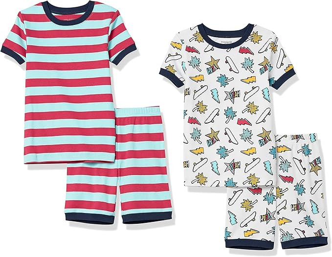 Baby Boy's Clothes Sets Short Sleeve Button Down Tops Casual Shorts Set Infant to Little Kid Star Print (Hot Pink,)