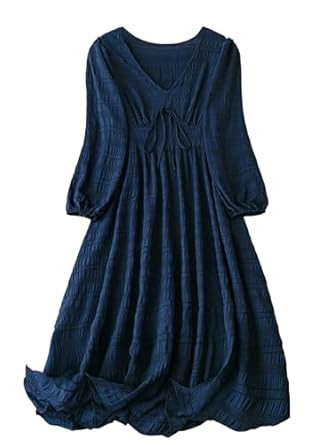 Shasmi Women's & Girl's Navy Blue Dress for Women Midi, One Piece Dress for Women's Casual Dress, Solid Textured Lantern Sleeve Tie Front V Neck Midi Dress